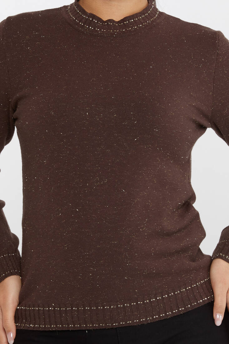 Kadın Triko Sim Detaylı Uzun Kollu Kahve - 31579 | KAZEE