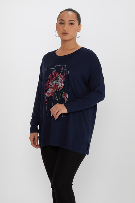 Kadın Triko Taş Detaylı Bisiklet Yaka Lacivert - 30648 | KAZEE