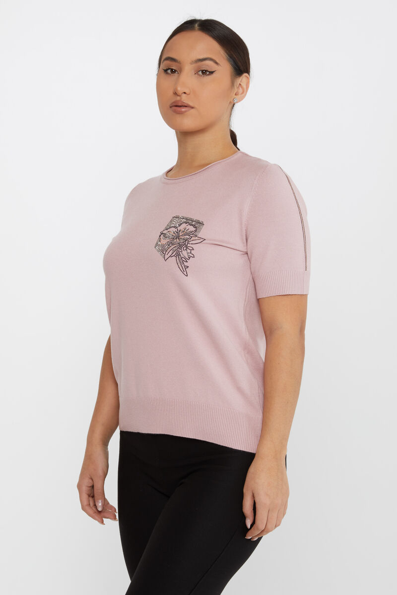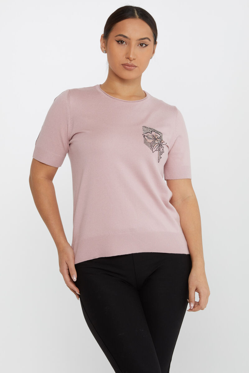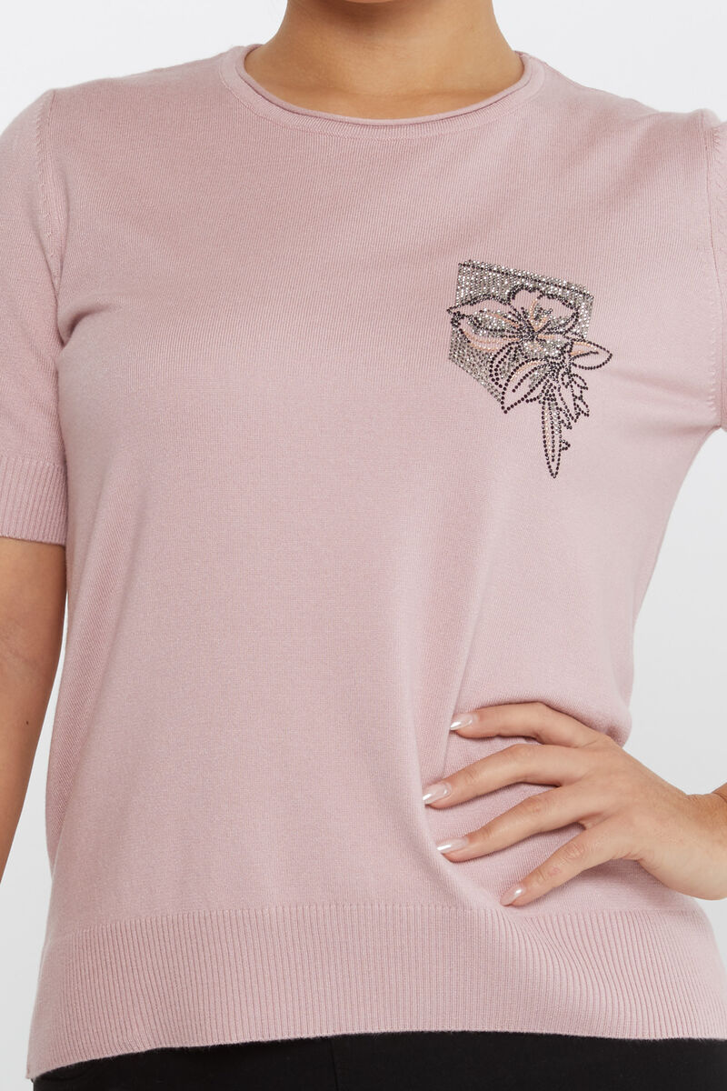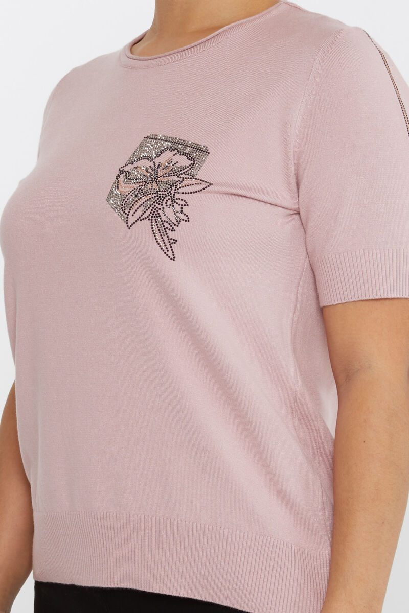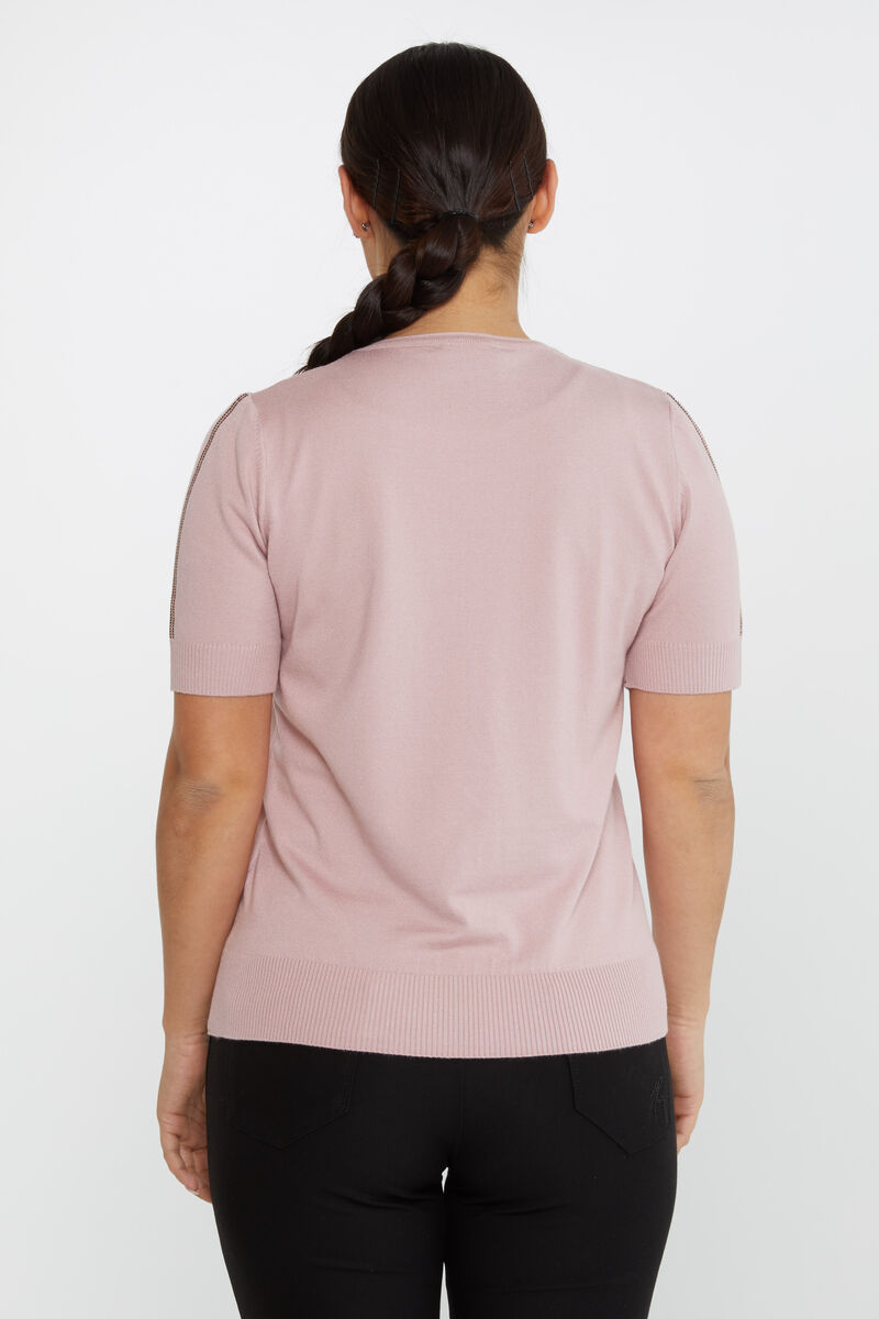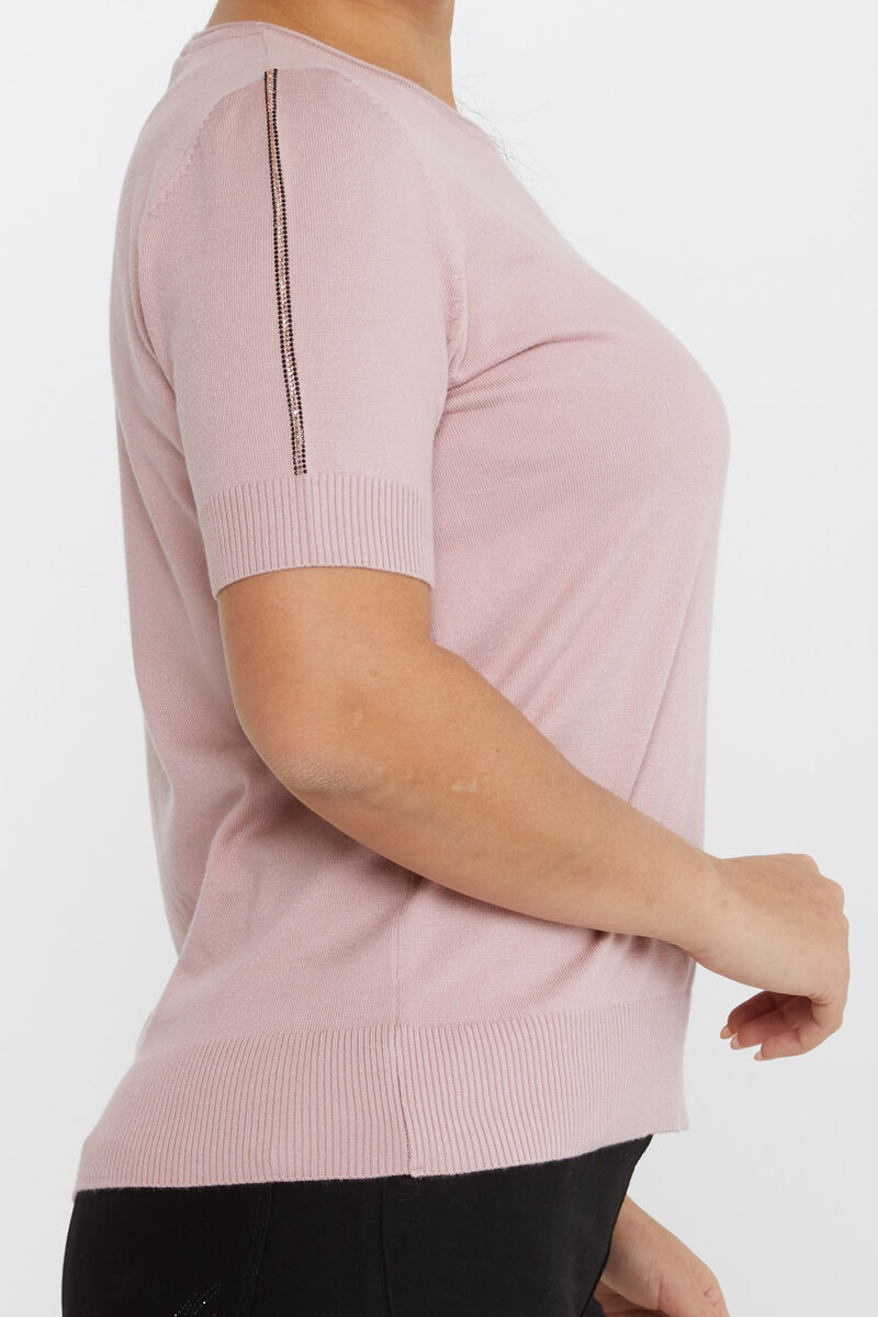 Kadın Triko Taş Detaylı Amerikan Model Pudra - 31594 | KAZEE