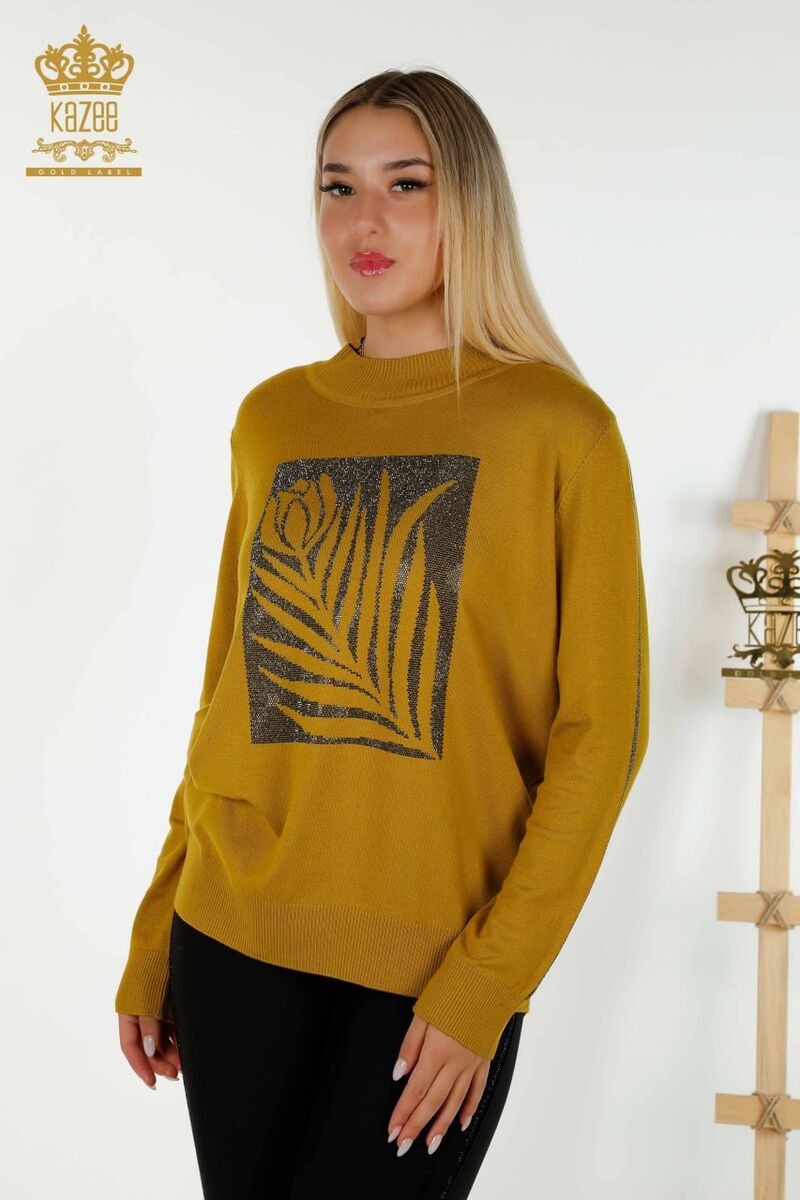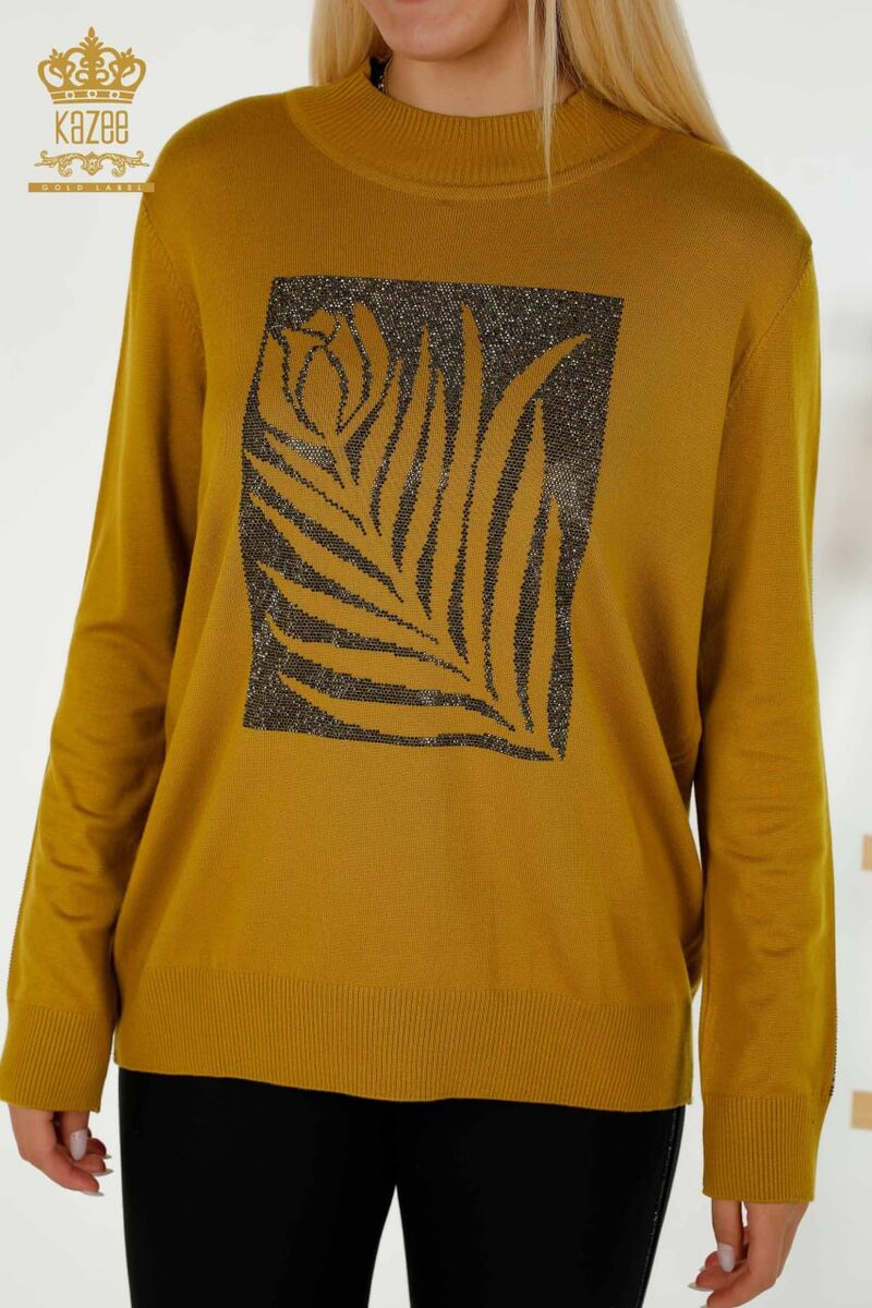 Kadın Triko Taş Detaylı Dik Yaka Safran - 30448 | KAZEE
