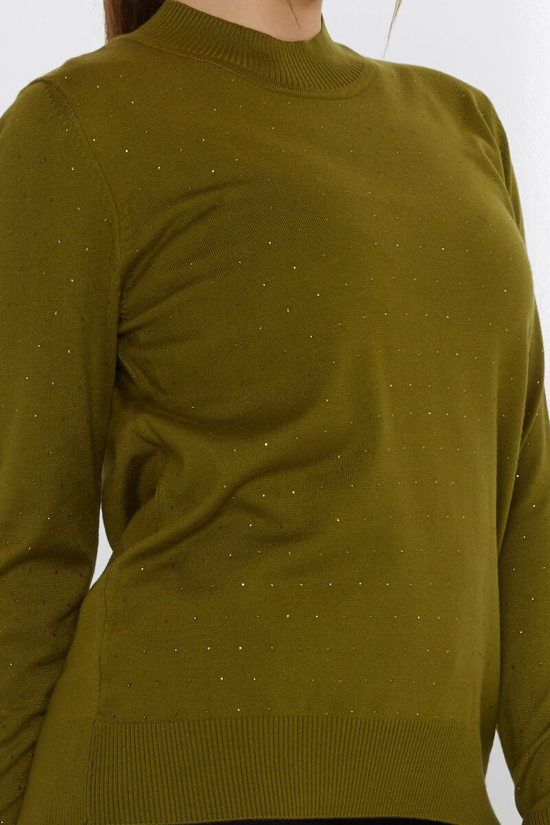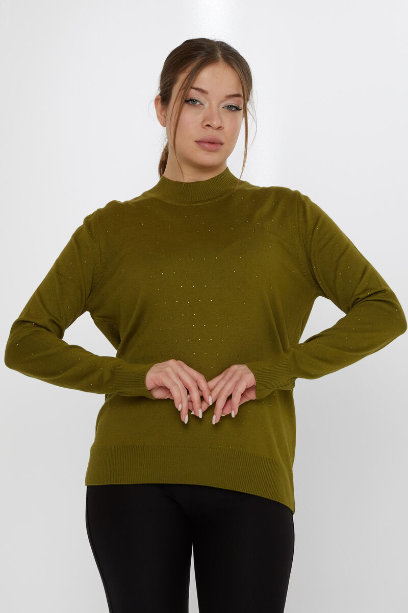 Kadın Triko Dik Yaka Taşlı Koyu Yeşil - 31513 | KAZEE
