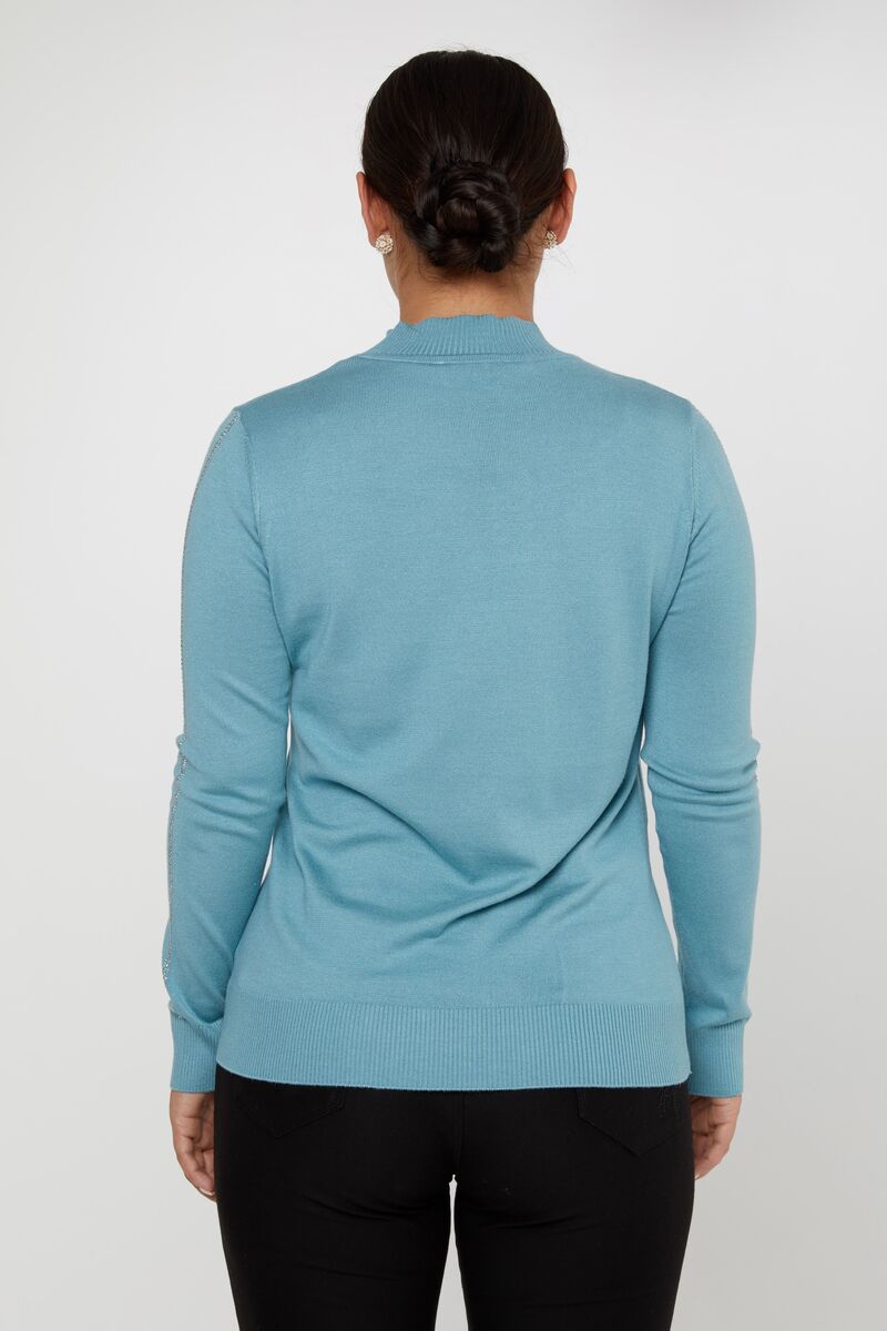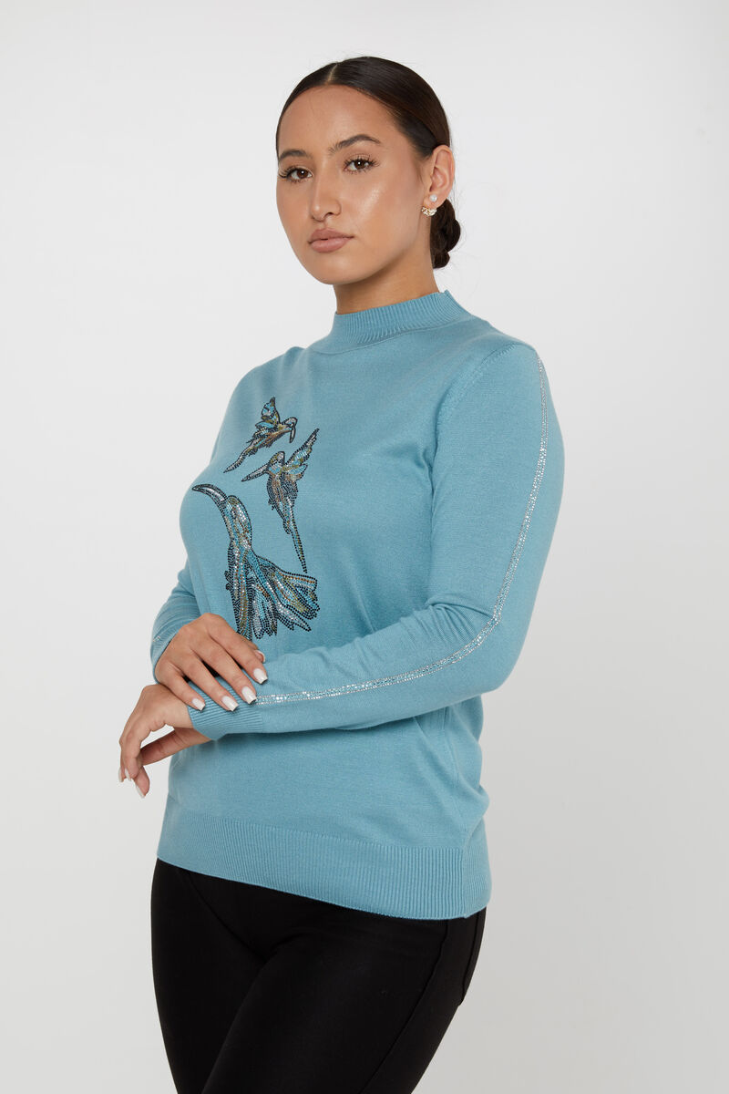Kadın Triko Taşlı Kuş Desenli Uzun Kol Mint - 31038 | KAZEE