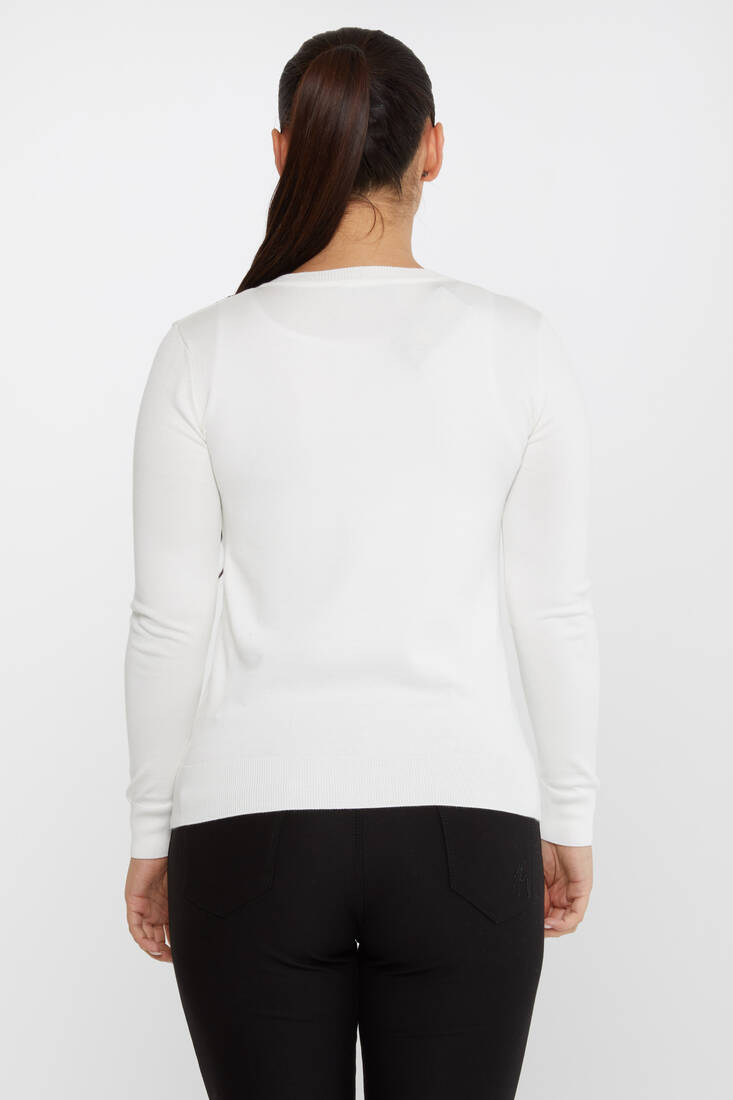 Kadın Triko Taşlı V Yaka Uzun Kollu Ekru - 30749 | KAZEE