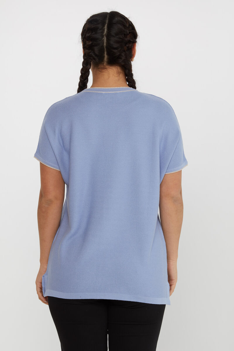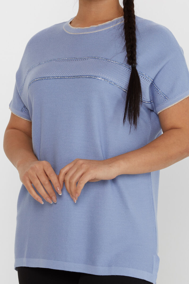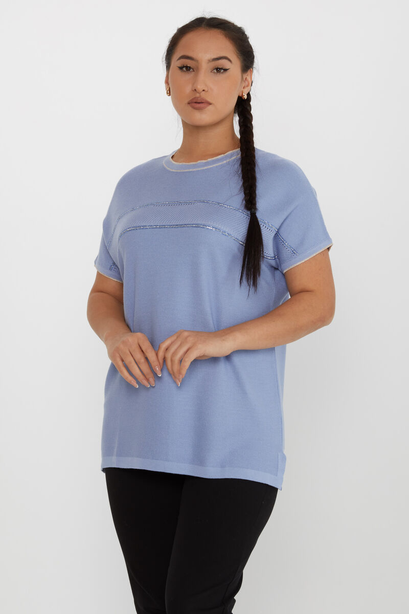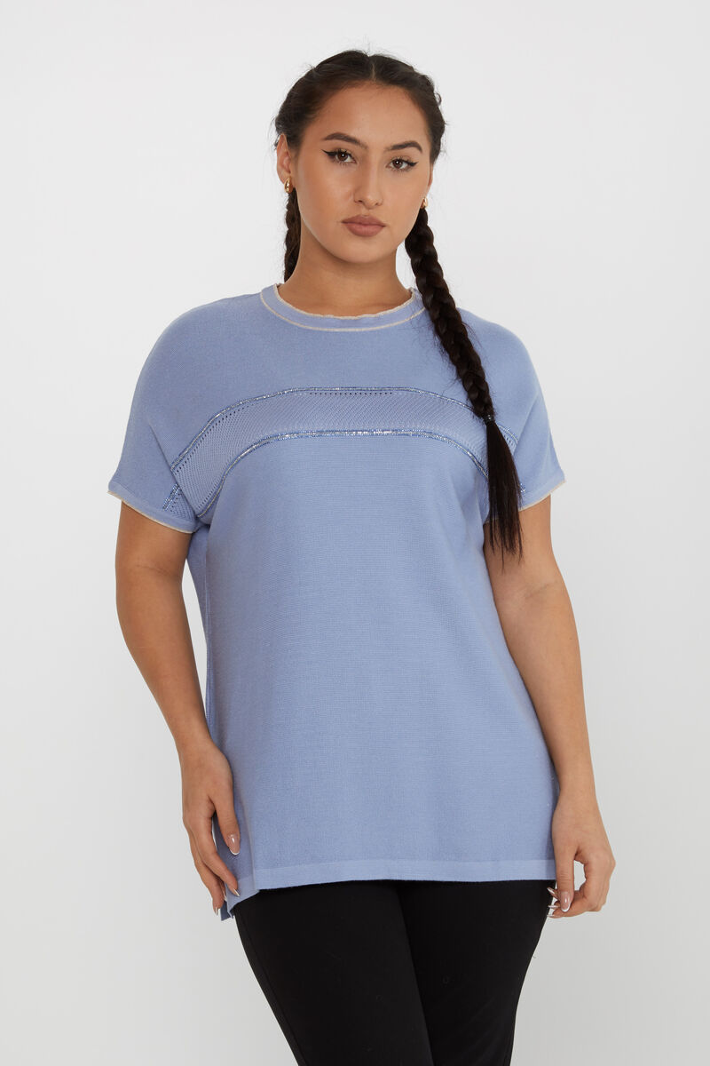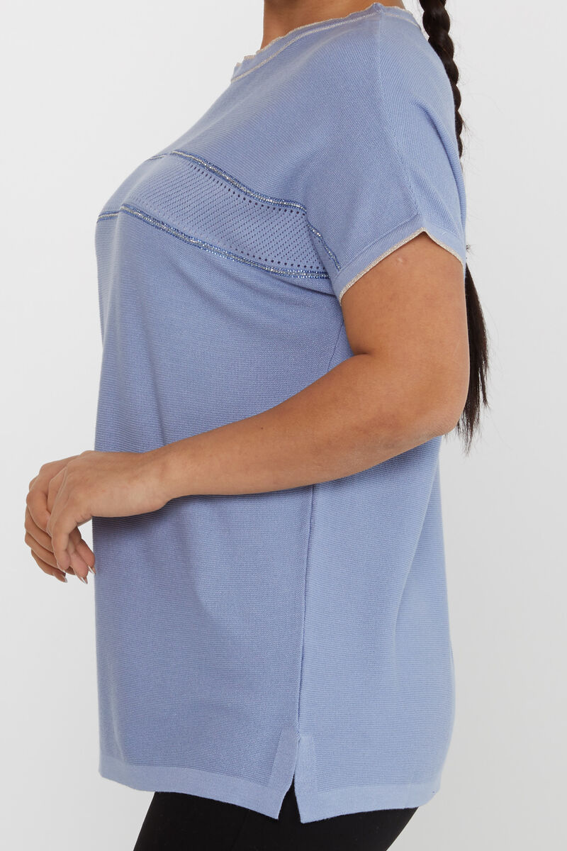 Kadın Triko Yaka Detaylı Taşlı Mavi - 30349 | KAZEE