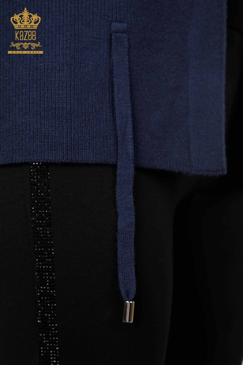 سترة نسائية مطرزة بأحجار الكريستال مطرزة بخيوط من التول ومربوطة أزرق كحلي - 16839 | كازي