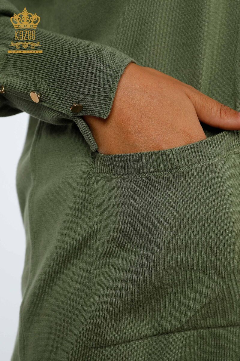 كارديجان نسائي تريكو جيوب مزين بأزرار كاكي - 15944 | كازي