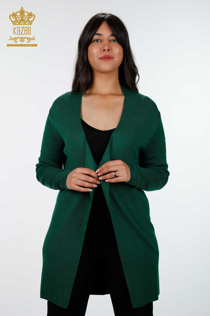 Bayan Triko Kol Düğme Detaylı Bisiklet Yaka Gri - 14337 | KAZEE
