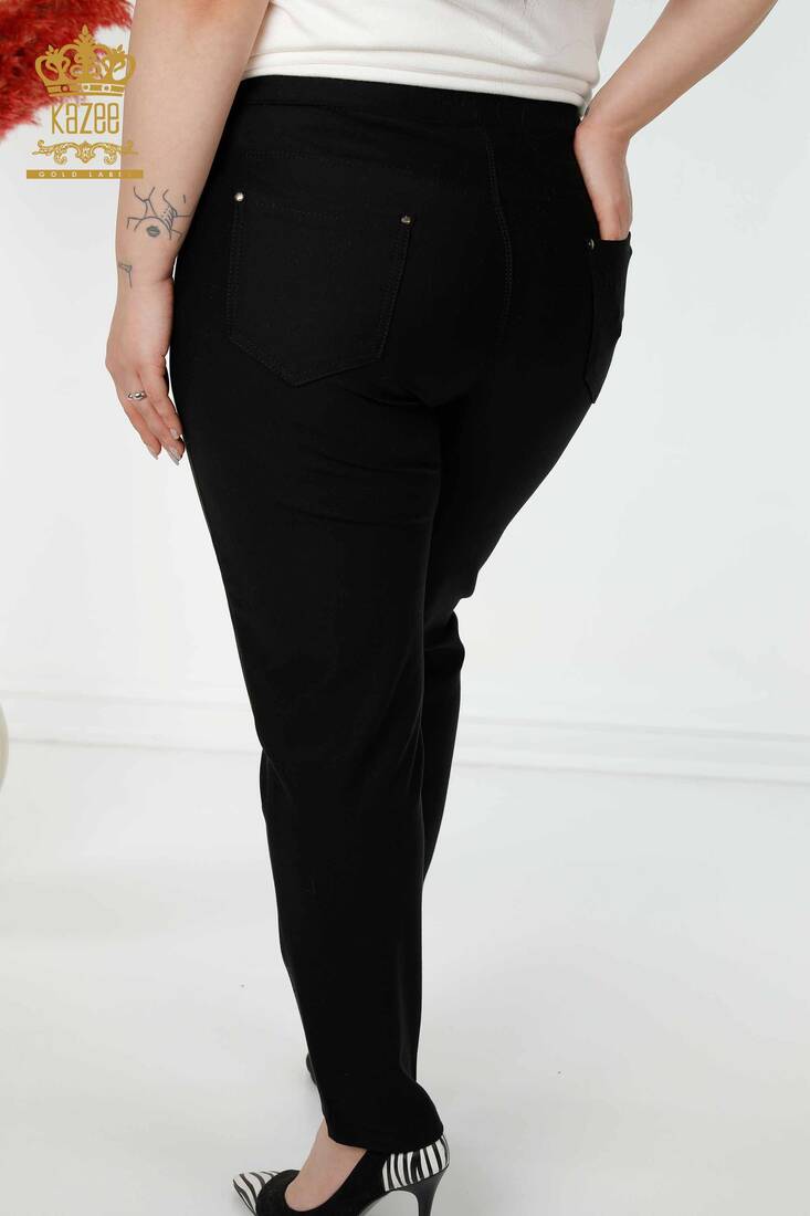 بنطلون نسائي مربوط أسود بجيب مطرز بالأحجار - 3657 | كازي
