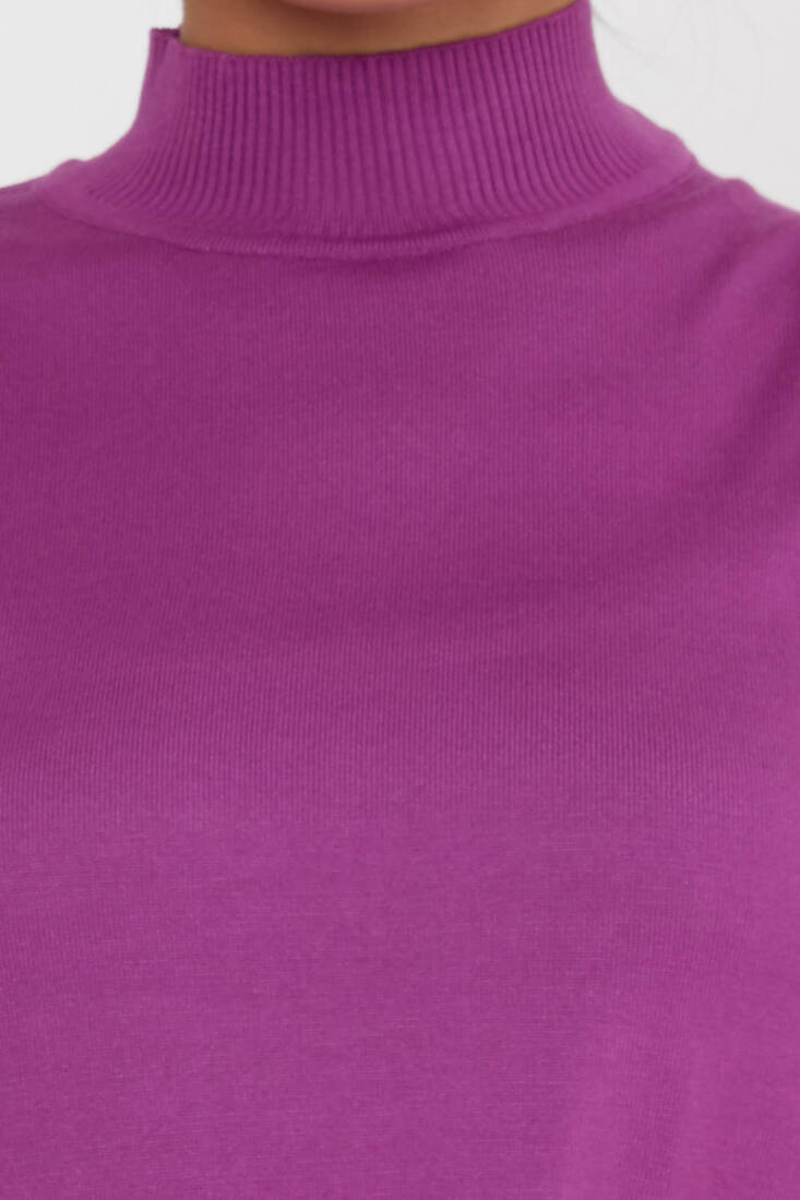 ملابس تريكو أساسية بياقة واقفة للنساء أرجواني - 16663 | كازي
