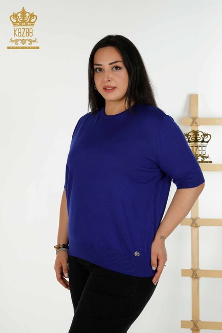 بلوزة نسائية محبوكة أساسية ذات رقبة مدورة باللون الأزرق - 11122 | كازي