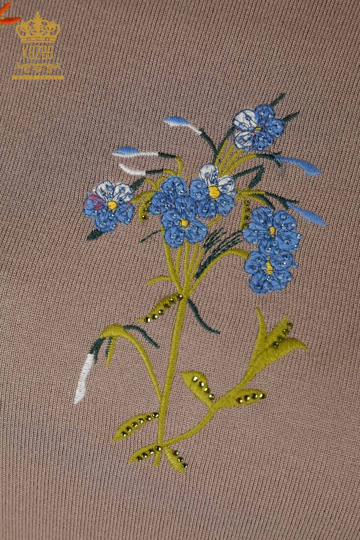 Women's Knitwear Sweater Stone Embroidered Floral Embroidered Stand Up Collar Mink - 16852 | KAZEE