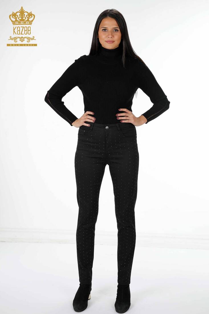 Women's Trousers Crystal Stone Embroidered Black - 3616 | KAZEE