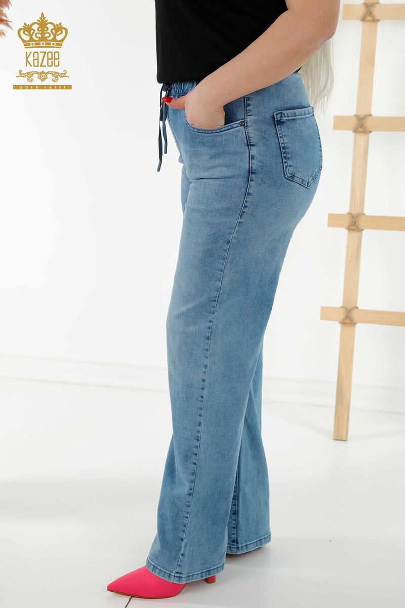 Women's Trousers Tied Waist Pocket Detailed Blue - 3695 | KAZEE