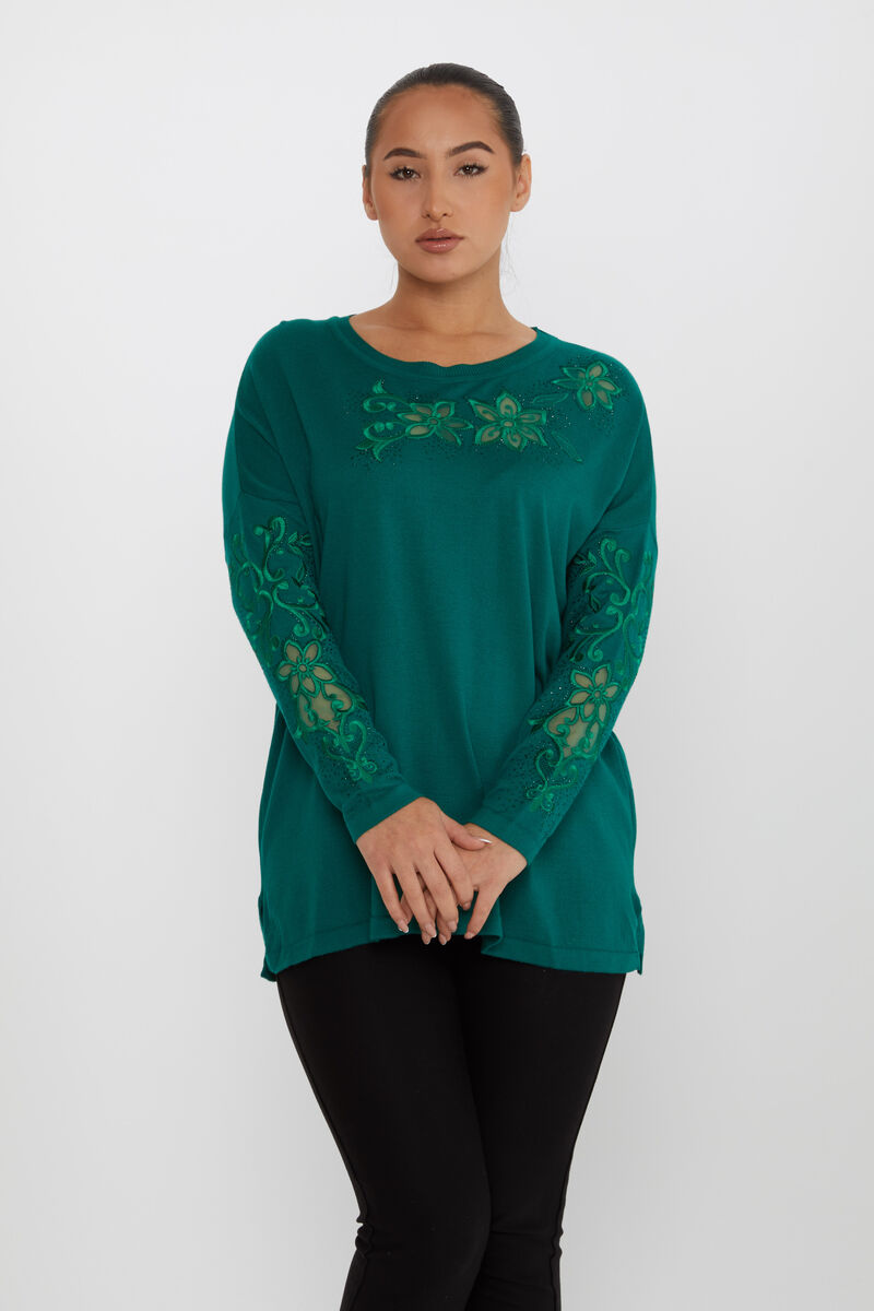 Women's Knitwear Stone Detailed Embroidered Emerald - 30527 | KAZEE
