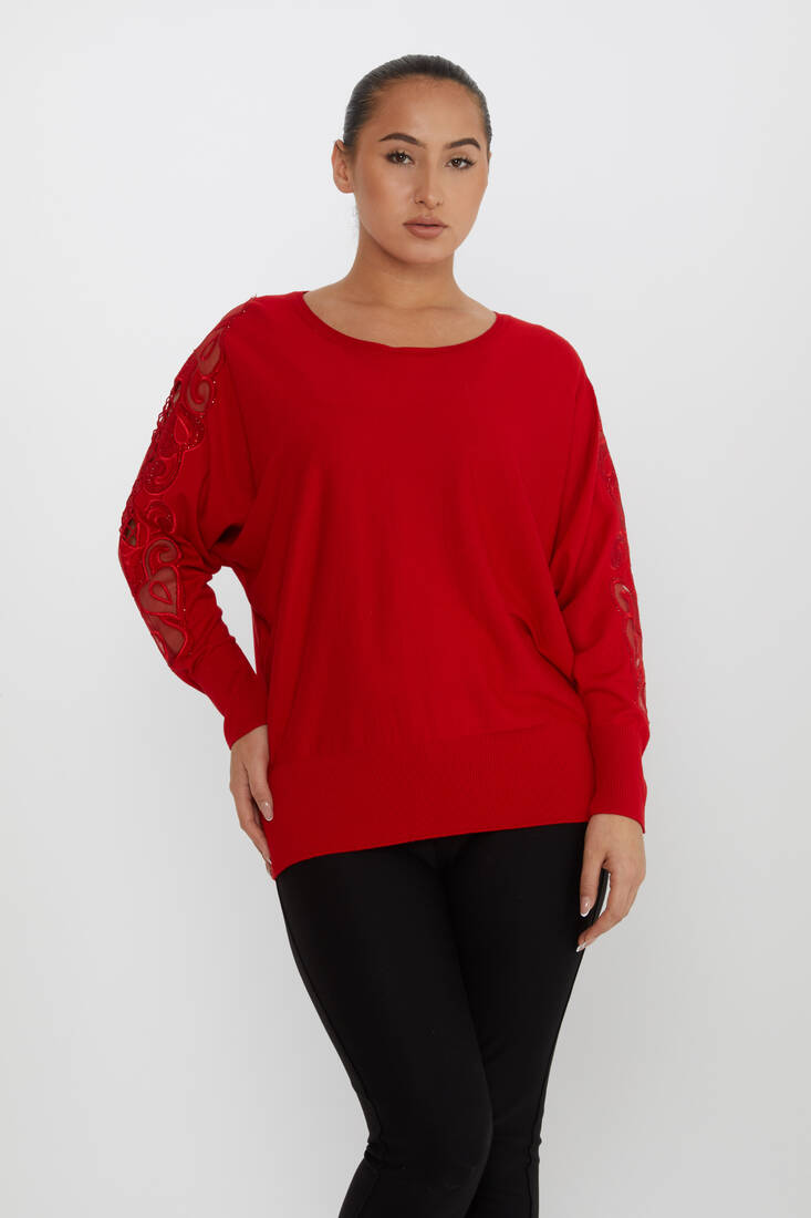 Women's Knitwear Embroidered Tulle Detailed Red - 30752 | KAZEE