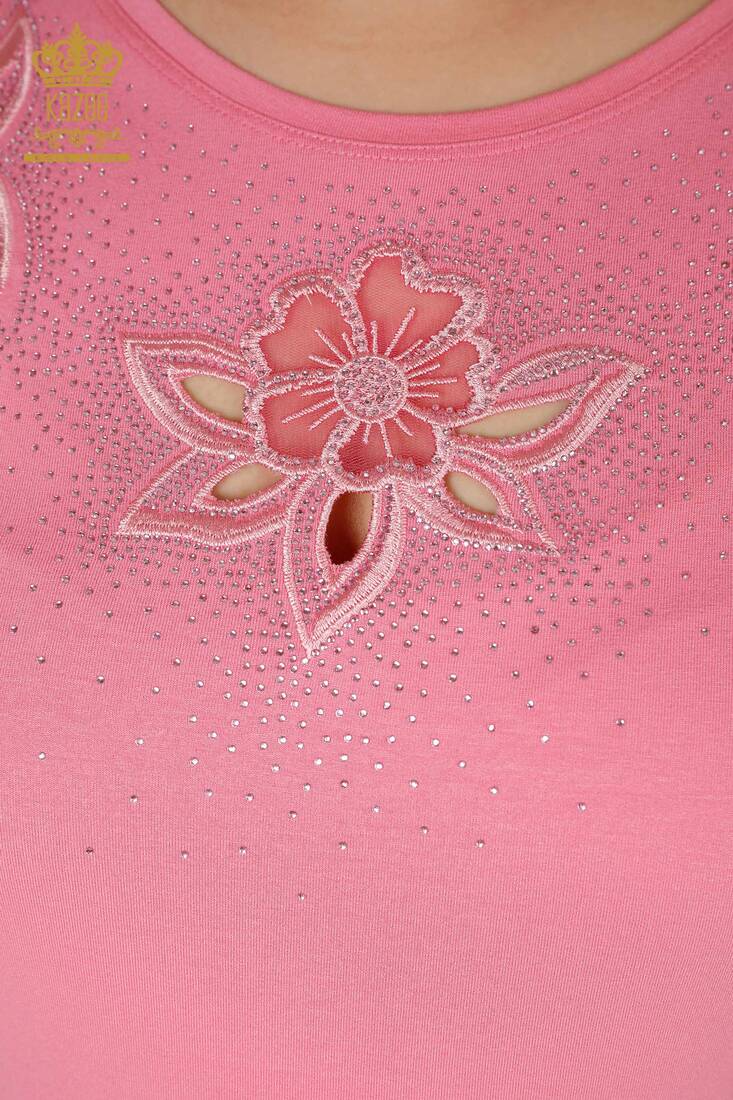 женская блузка с круглым вырезом и круглым вырезом с цветочным принтом, розовая - 78922 | КАЗЕЕ