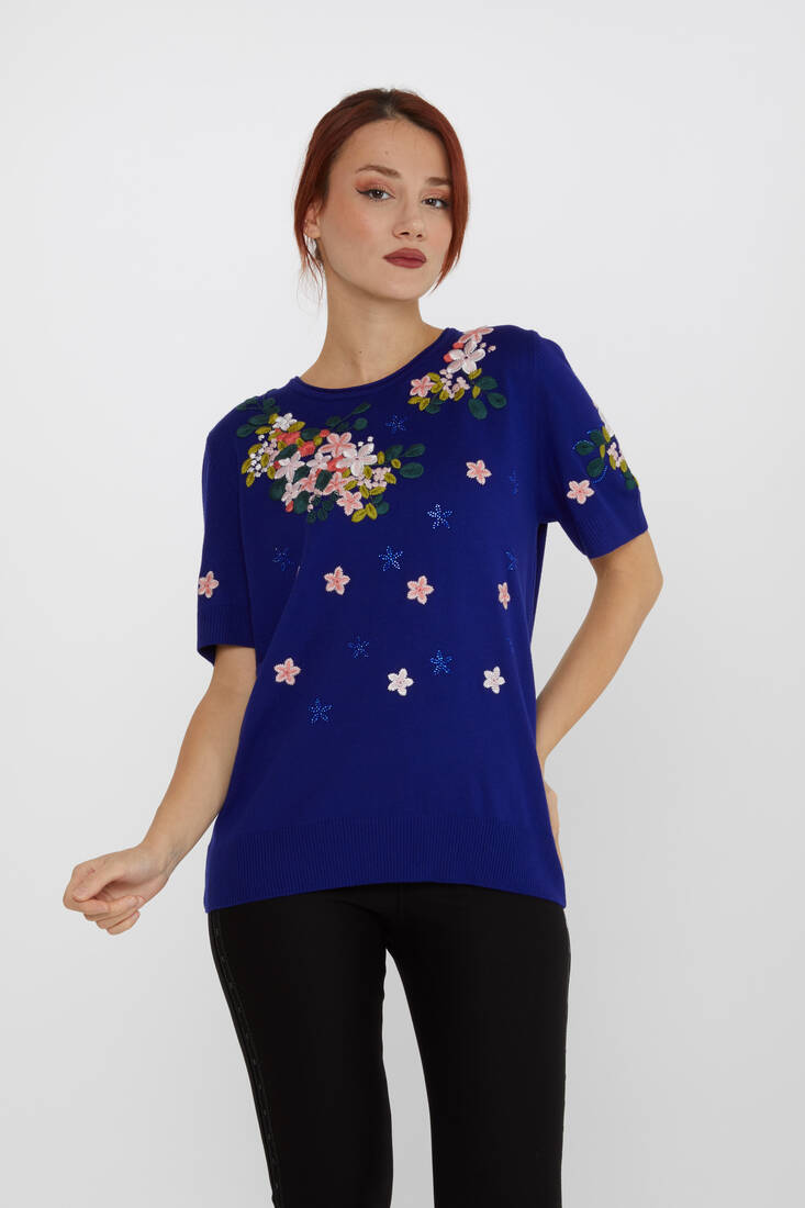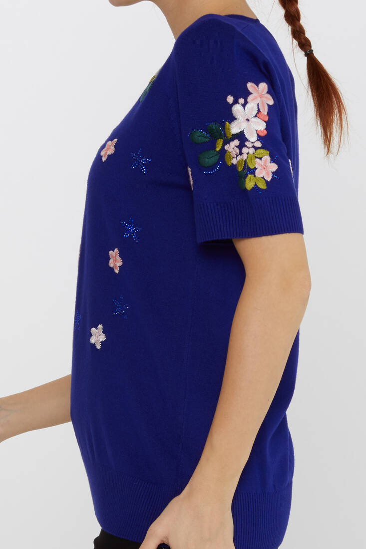 Женский трикотаж с коротким рукавом, цветочная вышивка, саксонский - 16761 | КАZEЕ
