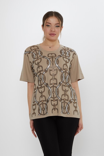 Женская модель блузки выглядит очень элегантно с длинными рукавами, короткими рукавами и деталями с вышивкой камнями.