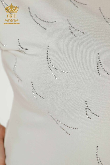 женская блузка с цветочной вышивкой с коротким рукавом и вышивкой камнями с круглым вырезом цвета экрю - 79086 | КАЗЕЕ