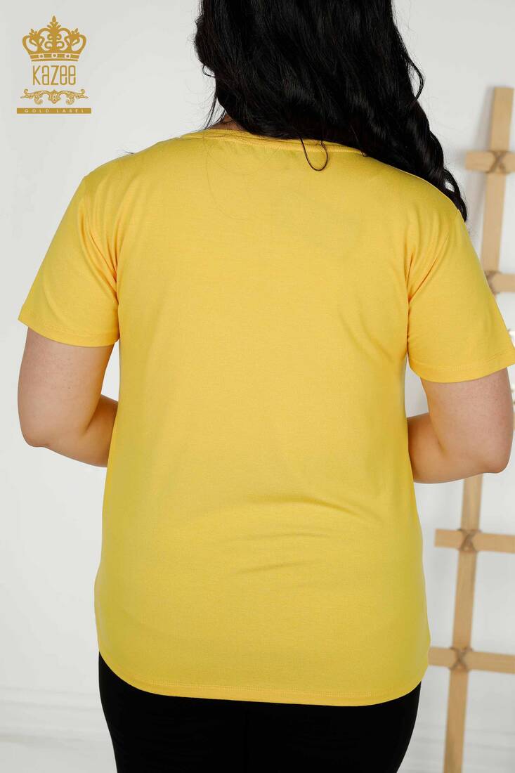 женская блузка с цветочным узором и вышивкой камнями, с круглым вырезом, желтая - 79369 | КАЗЕЕ