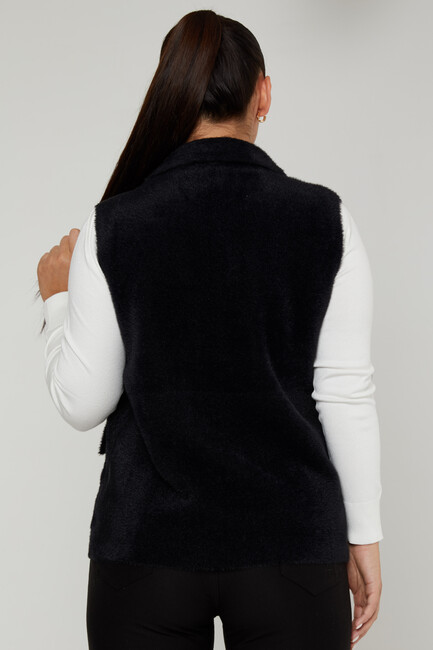Женский жилет из ангоры с карманом на жемчужных пуговицах, черный - 30999 | КАЗИ