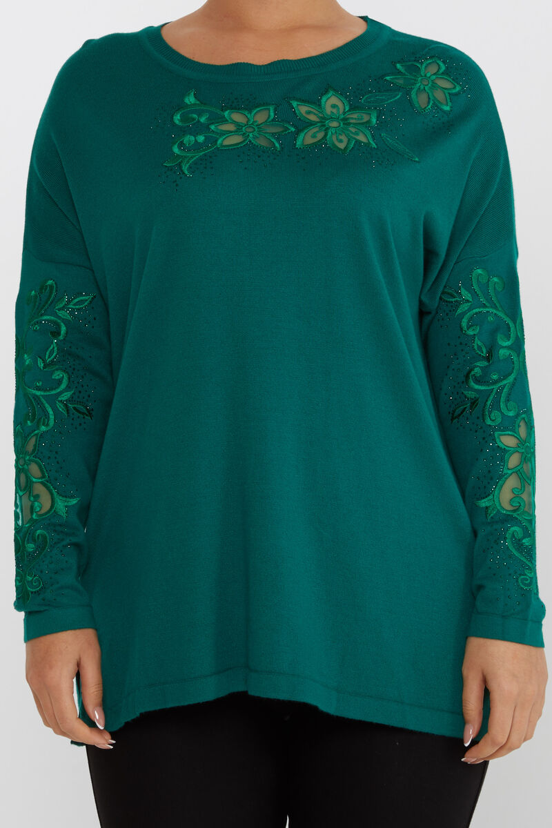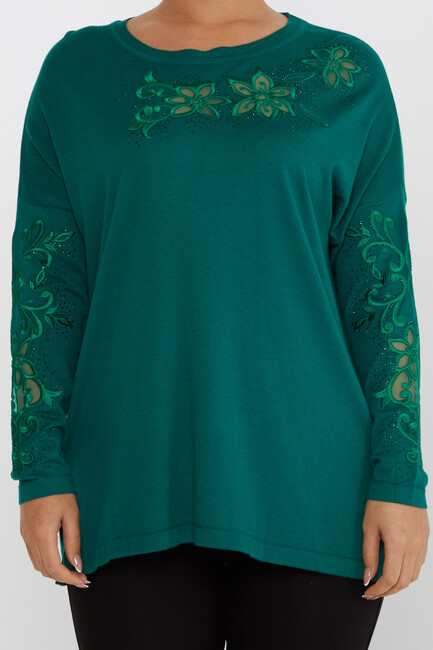 Женский трикотаж с вышивкой изумрудного цвета с каменными деталями - 30527 | КАЗЕ