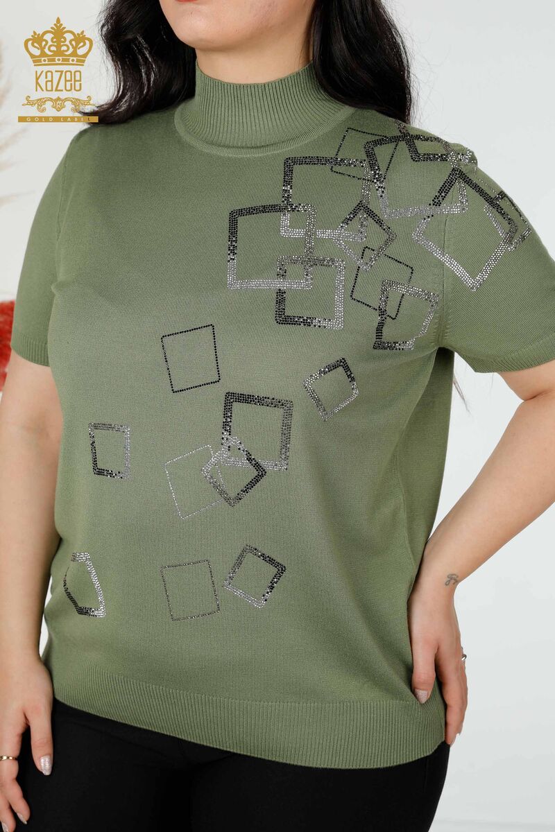 Женский трикотаж Воротник-стойка с вышивкой камнем цвета хаки - 16695 | КАЗЕЕ