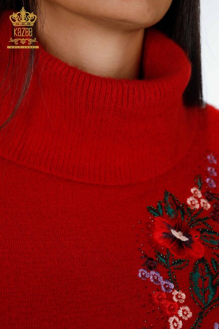 Женский Трикотаж Туника Цветочный Узор Вышитый Камнем Карман Водолазка Красный - 18870 | КАЗЕЕ