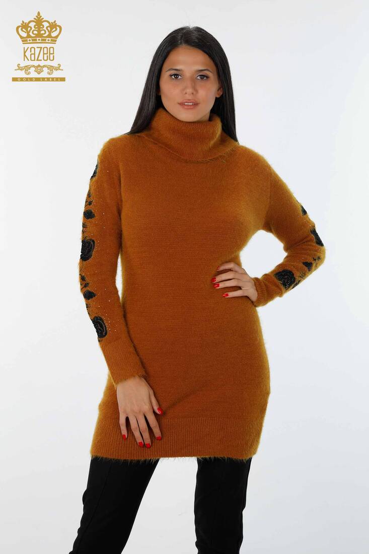 Женский трикотаж Туника Цветочная вышивка Водолазка с вышивкой камнем Горчичный - 18888 | КАЗЕЕ